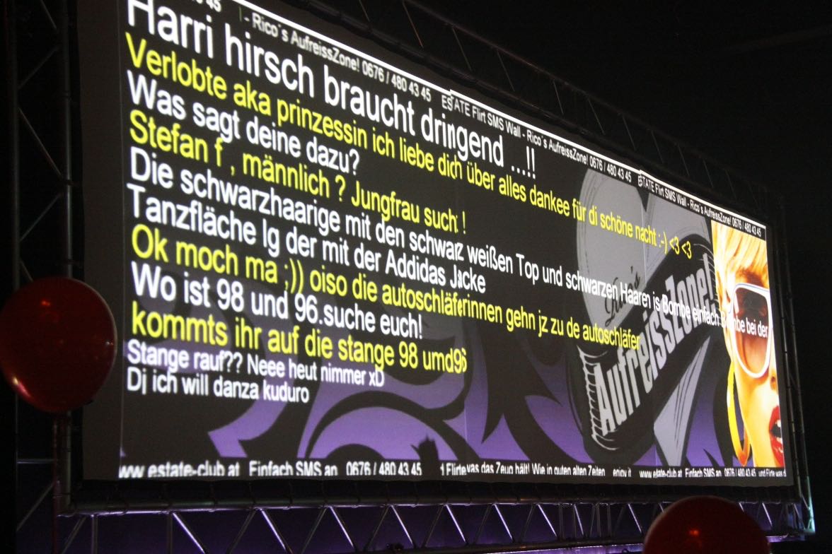 - SMS-Wall steht für Partyspaß, Partyspaß und Partyspaß